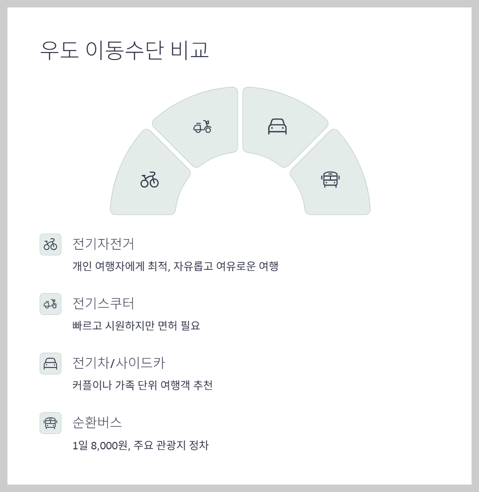 6. 우도에서 자전거 외 이동수단 비교