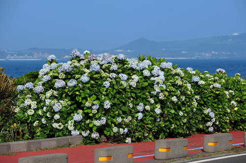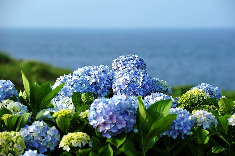 해안도로를 따라 피어나는 수국 덕분에 이 일대는 6월이 되면 자연이 만든 그림 같은 장면이 펼쳐집니다.