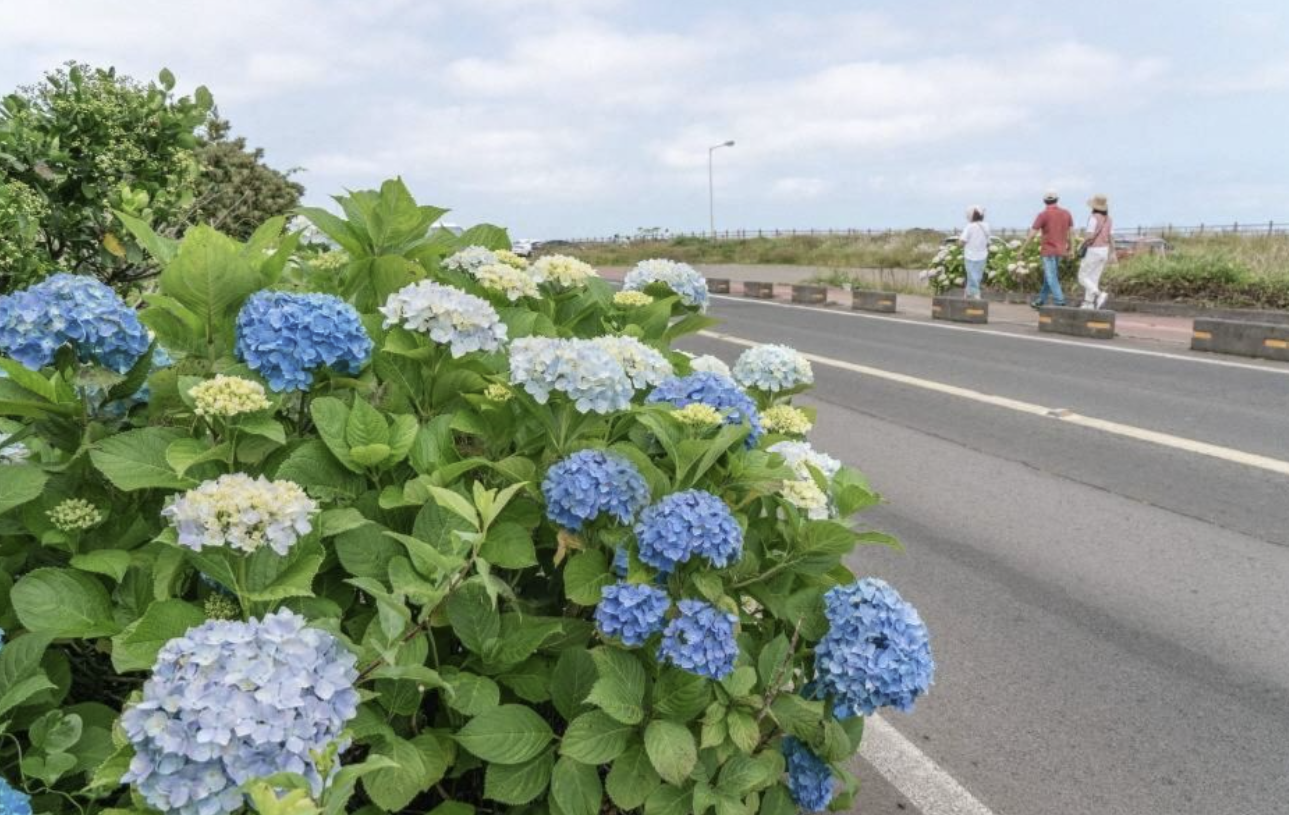 해안도로를 따라 피어나는 수국 덕분에 이 일대는 6월이 되면 자연이 만든 그림 같은 장면이 펼쳐집니다.