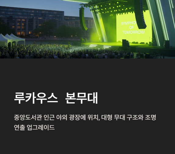 중앙대 서울캠퍼스 내 위치한 ‘루카우스 본무대’는 중앙도서관 인근 야외 광장에 설치되며, 매년 축제의 중심 역할을 해왔습니다. 특히 올해는 대형 무대 구조와 조명 연출까지 업그레이드되어, 공연의 몰입도를 높이는 데 중점을 두었습니다.
