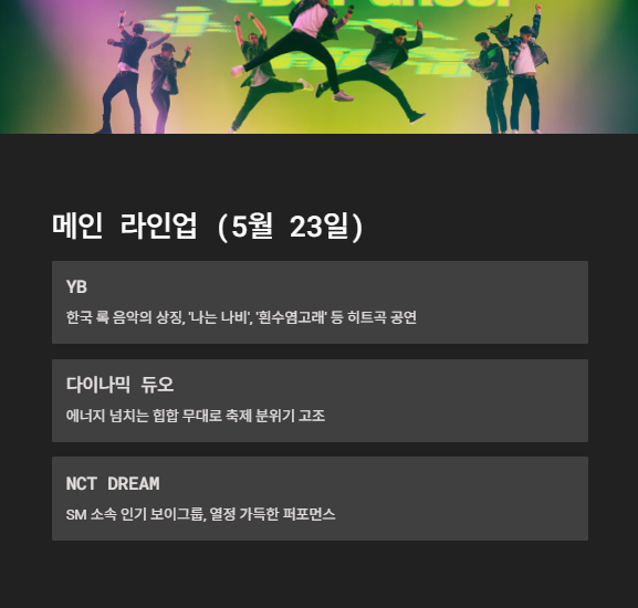 5월 23일 아티스트 메인 라인업