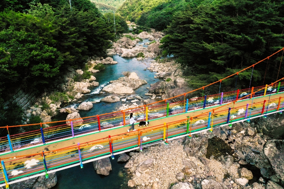 '구름이 머무는 바위'라는 뜻의 운일암, '햇볕이 반쯤 드는 바위'라는 뜻의 반일암은 그 이름 자체로도 시적인 정취를 더합니다. 최근에는 구름다리가 설치되어 데크 탐방로를 따라 걷는 즐거움과 함께 220m 길이의 현수교를 건너며 계곡 풍경을 한눈에 감상할 수 있어 더욱 인기를 끌고 있습니다.