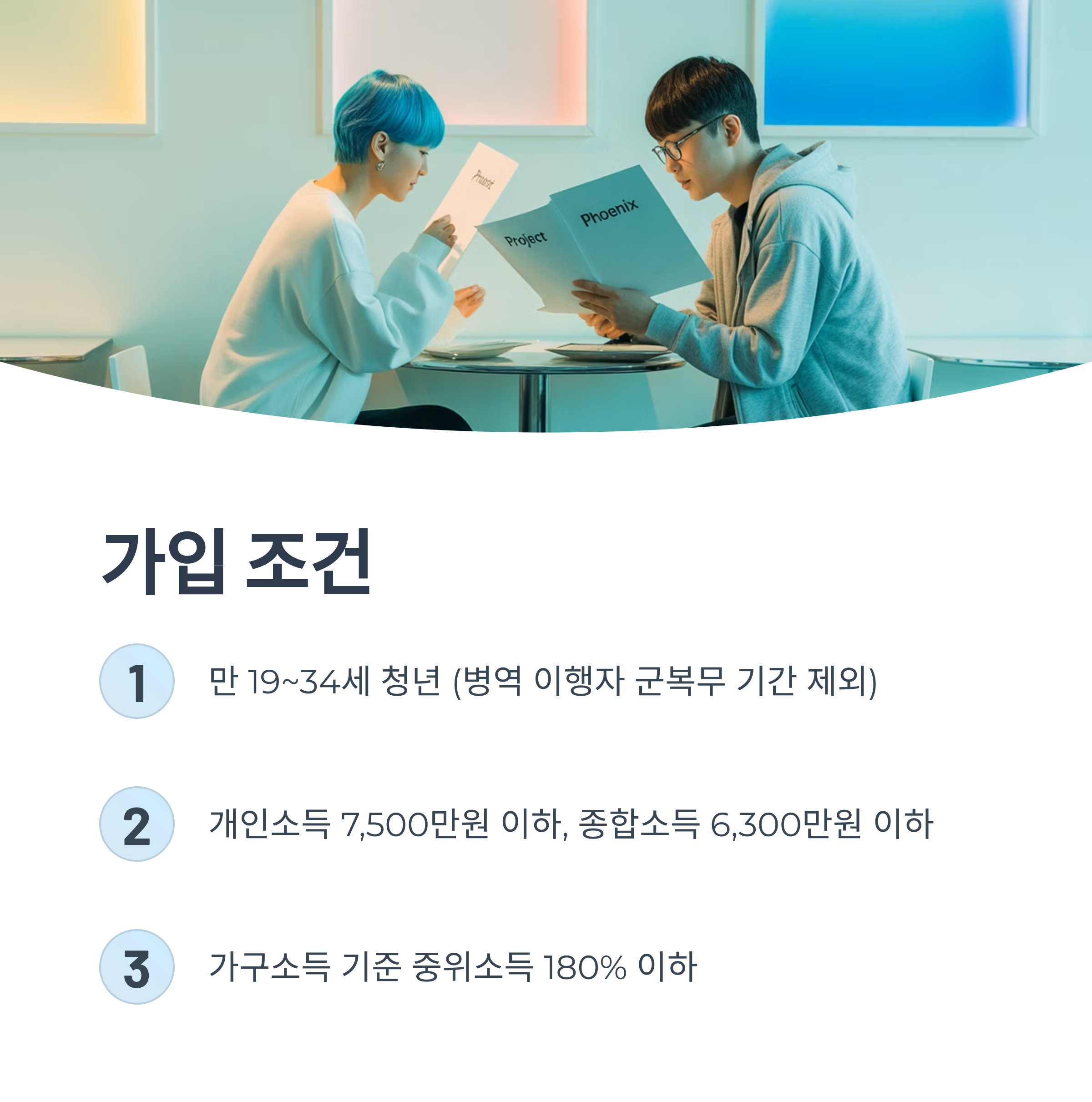 청년도약계좌 2025년 정부지원금 인상 신청 대상은 만 19~34세 청년입니다. 병역 이행자는 연령 계산 시 군복무 기간을 제외할 수 있으며, 개인 소득이 7,500만 원 이하, 종합소득 6,300만 원 이하이어야 합니다. 가구 소득은 기준 중위소득의 180% 이하로 제한되며, 신청 전 반드시 확인이 필요합니다.