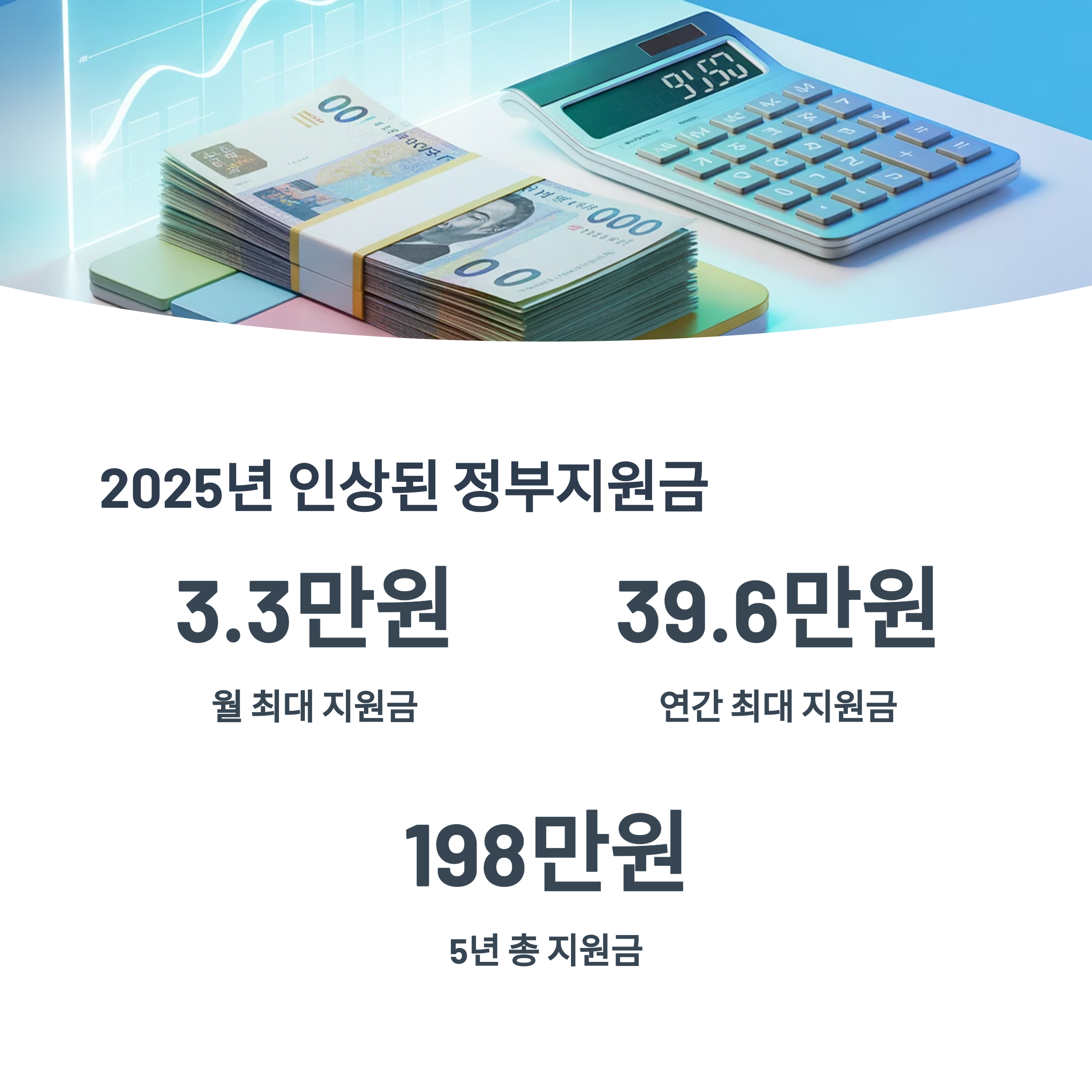 2025년부터 청년도약계좌 정부지원금이 최대 월 3만 3천 원으로 상향됩니다. 연간 최대 39만 6천 원, 5년간 총 198만 원에 달하는 지원금을 받을 수 있습니다. 이는 단순 저축을 넘어서는 수익률 향상 효과를 기대할 수 있어 청년층의 관심이 매우 높습니다.