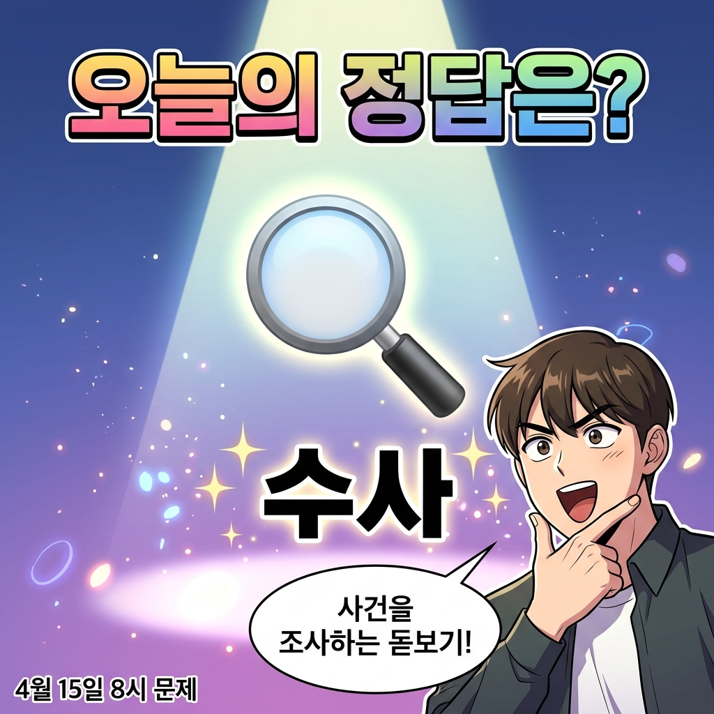 그래서 오늘의 정답은 바로 '수사'였어요. 이모지 조합을 보면 사건을 조사하고 파고드는 상황을 연상하게 하는, 딱 그런 느낌이었잖아요.