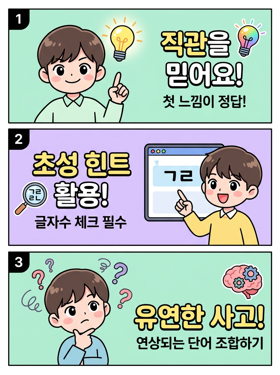 A. 이모지를 보고 직관적으로 떠오르는 단어를 생각하거나, 글자 수와 초성 힌트를 먼저 확인해 보세요. 연상되는 단어들을 조합해 보는 것도 좋은 방법이에요.