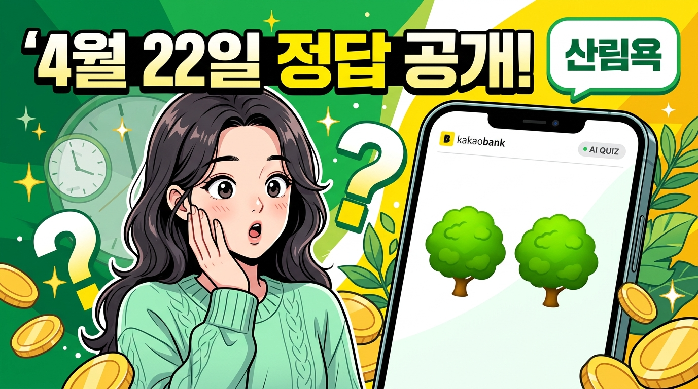 A. 4월 22일 카카오뱅크 AI 이모지 퀴즈의 정답은 '산림욕'이에요. 나무 두 그루 이모지와 초성 힌트 'ㅅㄹㅇ'을 통해 유추할 수 있었던 거죠.