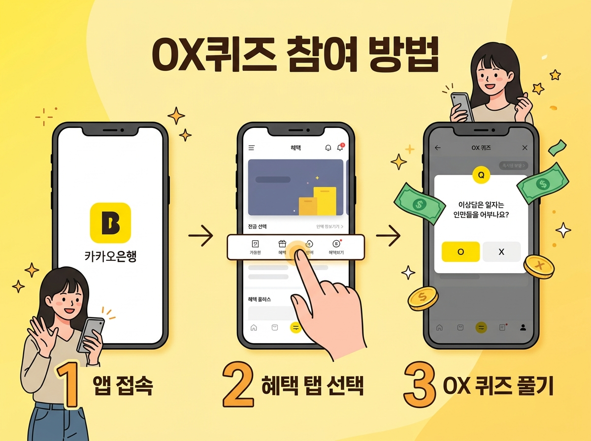 카카오뱅크 OX퀴즈에 참여하는 방법은 매우 간단해서 누구나 쉽게 따라 할 수 있어요.
