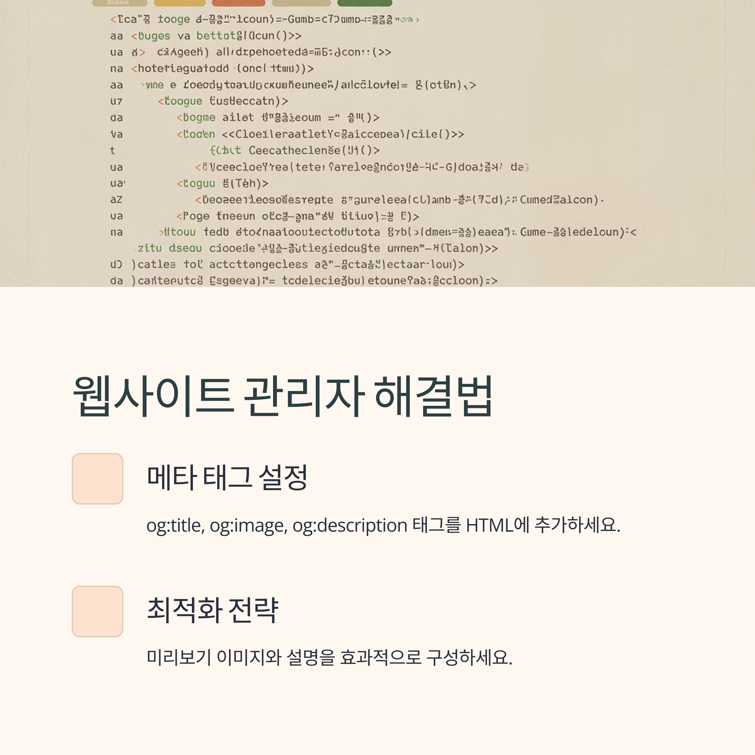 내 웹사이트나 블로그 링크가 카카오톡에서 더 매력적이고 정확하게 보이도록 하는 건 방문자 유입과 브랜딩에 아주 중요합니다. 이걸 위한 핵심 전략을 살펴볼게요.