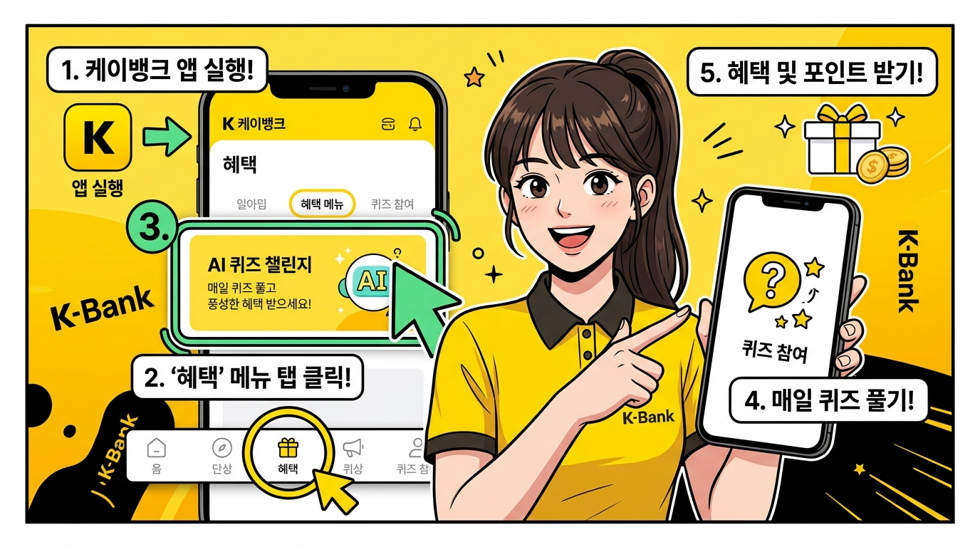 케이뱅크 AI퀴즈봇 오늘의 퀴즈에 참여하는 방법은 정말 간단해요. 우선, 케이뱅크 앱을 실행해야겠죠.