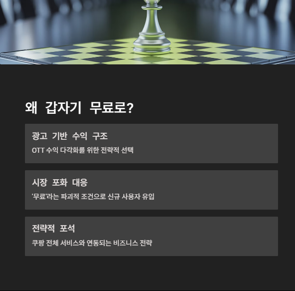 이번 쿠팡플레이 무료화는 국내 OTT 시장 전체에 충격을 준 결정입니다.