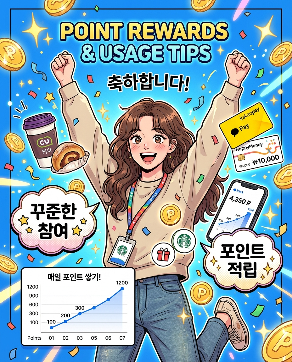 포인트는 즉시 지급되는 기본 포인트와 1등을 맞혔을 때 지급되는 보너스 포인트로 구성되어 있어요. 이 포인트들은 토스 앱 내에서 현금처럼 사용하거나 기프티콘 구매, 결제 시 할인 등 다양한 방법으로 활용할 수 있었어요. 예를 들어, 제가 모은 포인트로 편의점에서 커피를 사 먹었을 때 정말 뿌듯했거든요.