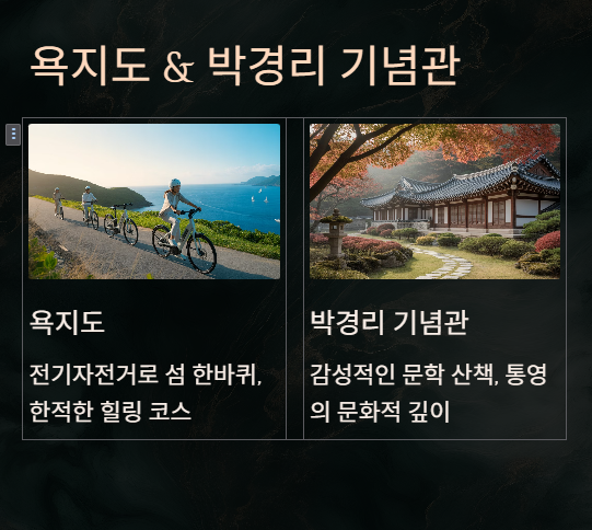 ‘토지’ 작가 박경리 선생의 발자취를 따라 천천히 걸으며, 통영의 고요함과 문화적 깊이를 느낄 수 있어요.