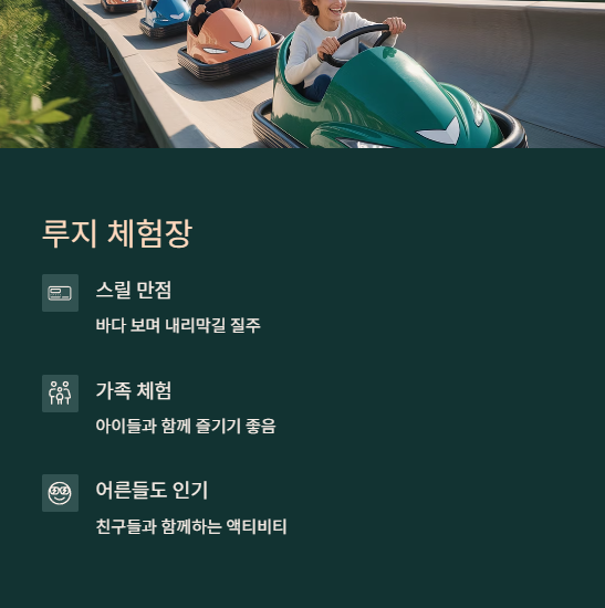| 루지 체험 | 액티비티 | 가족·커플 추천 |