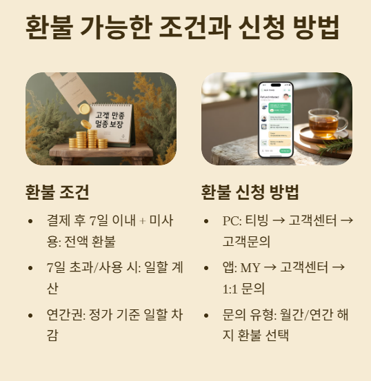 | 환불 신청 | 고객센터 → 1:1 문의 필수 |