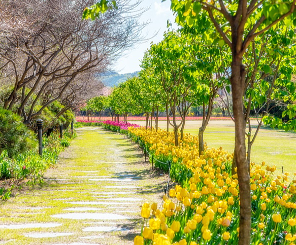 특히 햇살 아래 반짝이는 노란 튤립은 생기 넘치고 활기찬 분위기를 더해줬습니다.