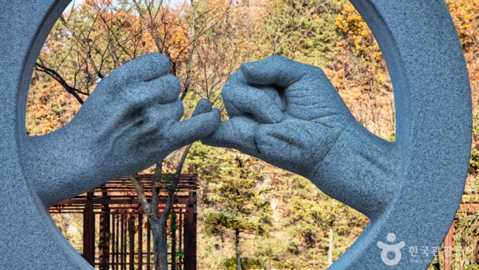 정상에 도착하면 바로 만나게 되는 야외 조각공원은 다양한 현대 조각작품이 전시된 공간입니다. 바위산과 조각 작품이 조화를 이루며 독특한 분위기를 자아내고, 걷는 내내 소소한 감동을 줍니다.