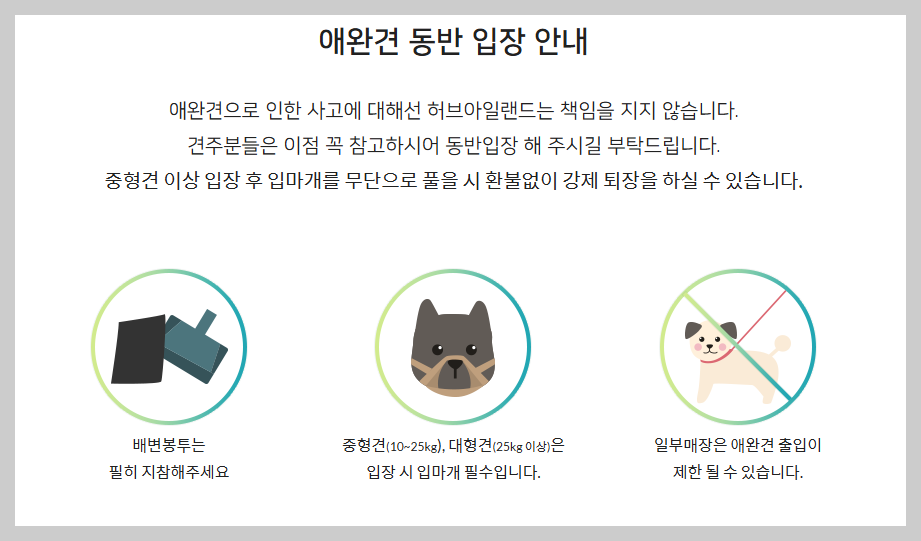 - 반려견은 입마개 없이 입장 가능, 단 리드줄 필수