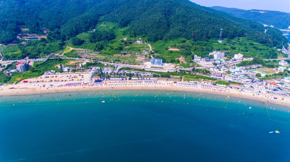 고운 모래와 맑은 바다가 펼쳐지는 조용한 해변입니다. 캠핑과 피서에 알맞으며, 인근에 숙소와 맛집이 밀집해 있어 여름철 인기 스폿이에요.