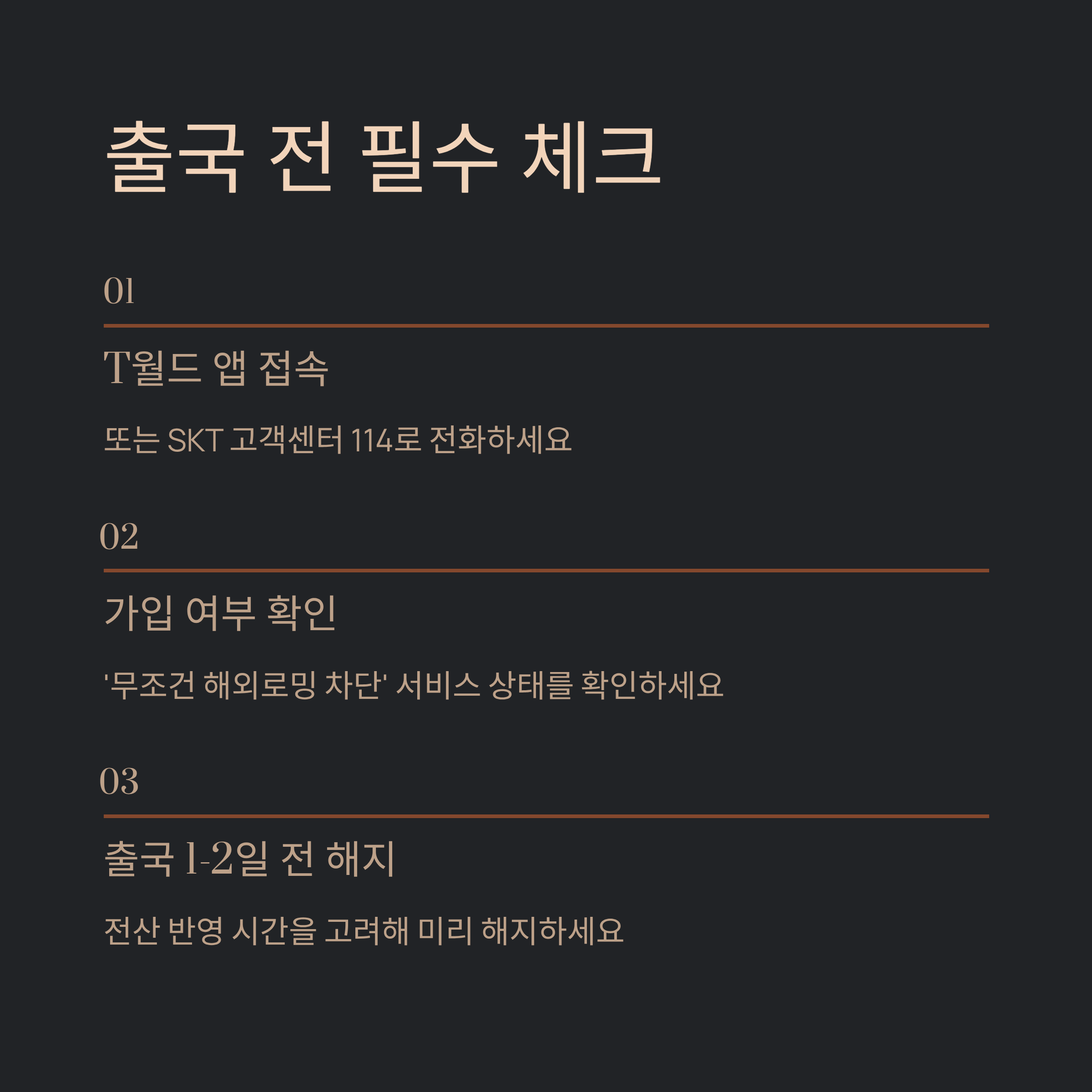 가입 상태라면, 최소 출국 1~2일 전에는 꼭 해지해두는 걸 추천드려요. 전산 반영에 시간이 걸릴 수 있으니까요.