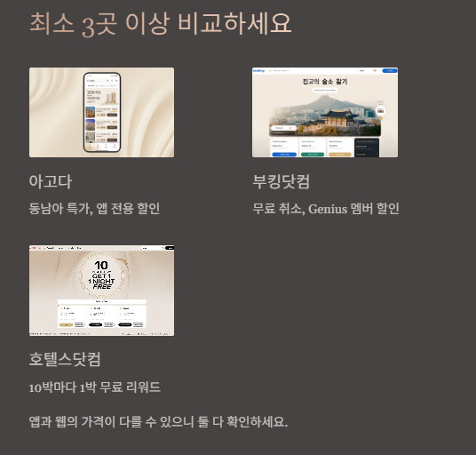 - 아고다, 부킹닷컴, 익스피디아 등 요금 비교 노출