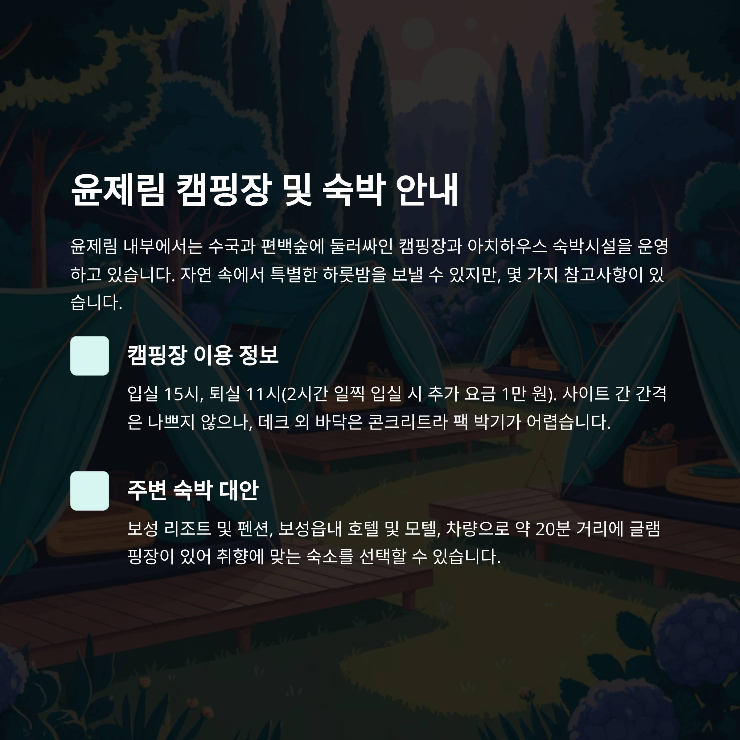5. 윤제림 캠핑장 및 숙박 안내