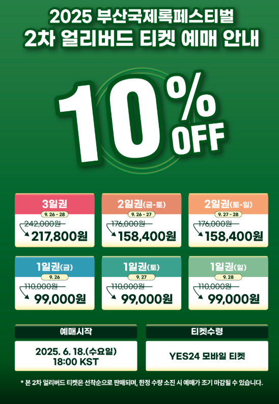 2025 부산국제록페스티벌은 단순한 음악 축제를 넘어, 참여자 모두가 함께 만들어가는 열정의 무대입니다. 예매 오픈 전 정보를 미리 챙겨두면 더 여유롭게 즐길 수 있겠죠? 9월의 록 감성을 만끽하고 싶은 분들은 이번 기회를 놓치지 마세요!