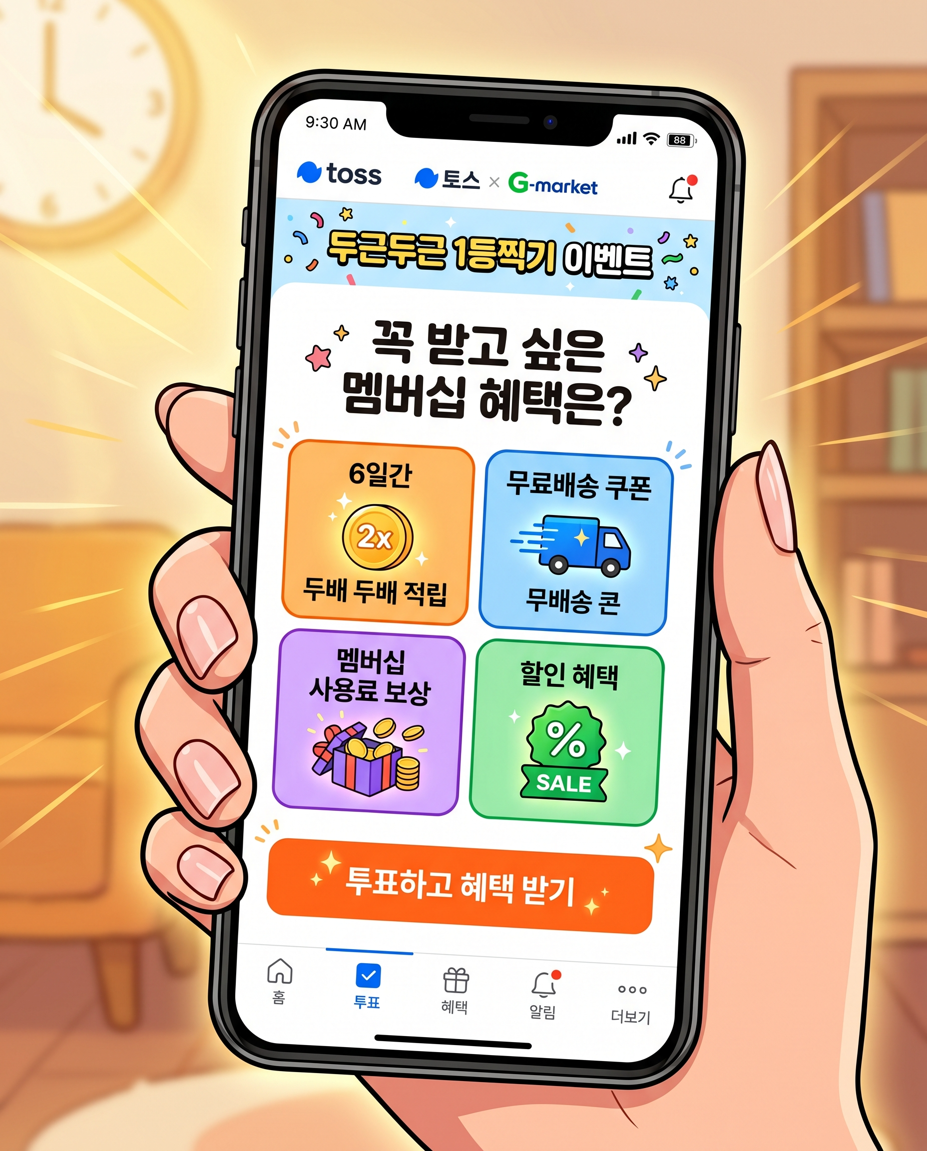G마켓에서 꼭 받고 싶은 멤버십 혜택이 무엇인지에 대한 토스 두근두근 1등찍기 문제가 오늘 출제되었어요. 어제는 로봇청소기가 1등을 차지하며 생활 편의성을 높이는 제품들이 주목받는 흐름이었는데요.